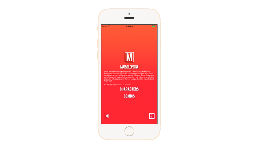 Create a simple UI/UX app that was encyclopedia to Marvel Universe using the MarvelAPI. An app using a unique UI that honors the Marvel Brand.